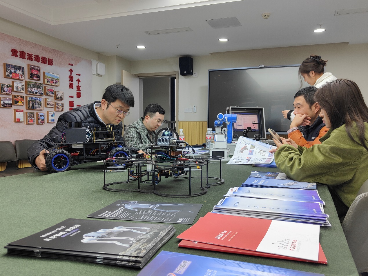 11月28日上午学院副经理陈枫、实验中心主任闫嘉组织相关教师与人工智能实验教学设备企业交流,深入探讨人工智能实验教学和设备的发展方向,重点了解人形机器人、无人机、智能小车、智能机械臂等在人工智能专业实验教学中的应用和效果,打造公司的机器人实验教学项目特色,努力打造紧跟人工智能发展前沿本科实验教学环境