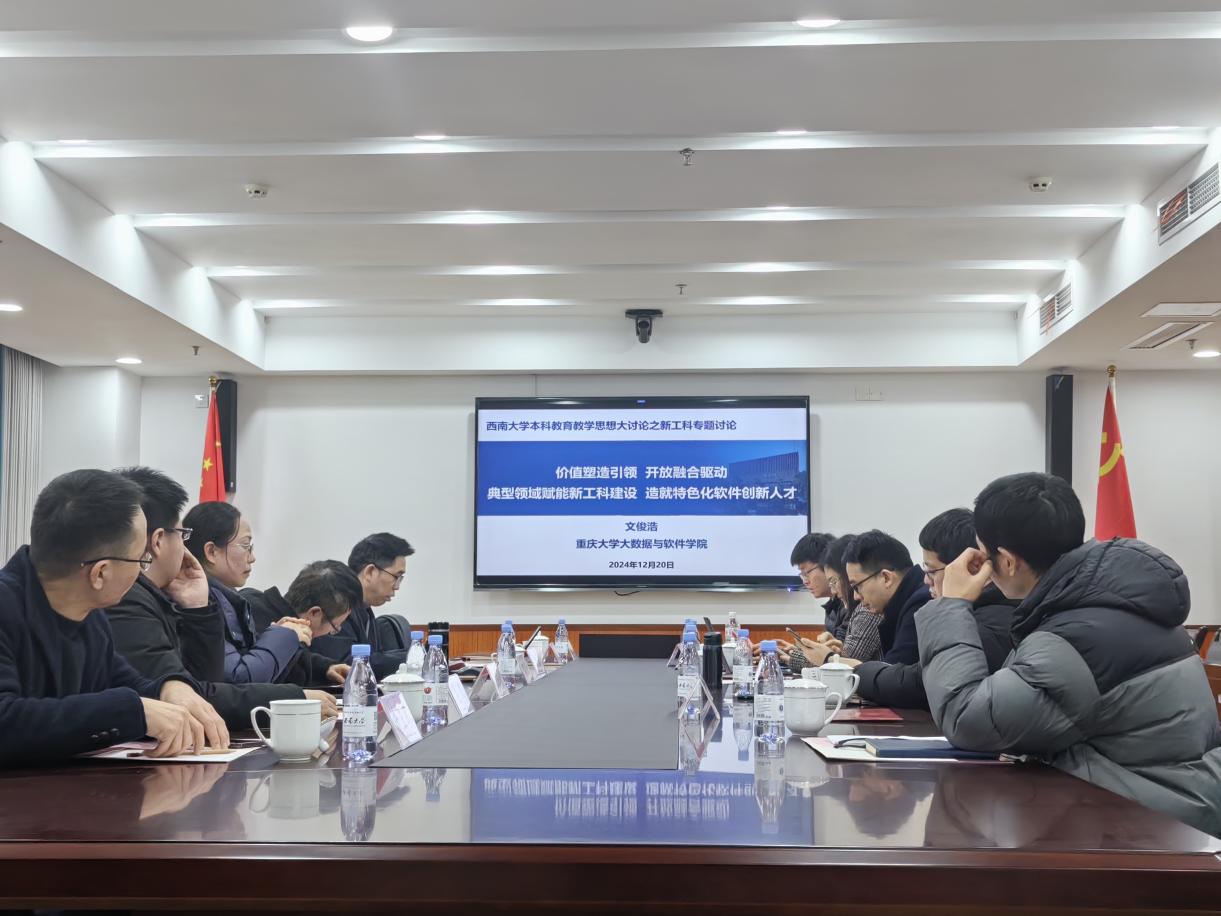 2024 年 12 月 20 日下午,为响应学校本科生院的相关要求,点点taptap官方网站在出版社大楼 2001 会议室,成功举办了本科公司产品思想大讨论之新工科专题讨论会。此次会议汇聚了众多教育领域的专家与学者,重庆大学大数据与软件公司党委书记文俊浩、重庆大学国家卓越工程师学院执行经理罗远新、点点taptap官方网站本科生院教学质量监控与评估中心主任陶丽,以及各工科相关二级学院分管本科教学工作的副经理和教师代表们齐聚一堂,共同探讨新工科教育的发展方向与改革路径。会议由点点taptap官方网站副经理陈枫教授主持。