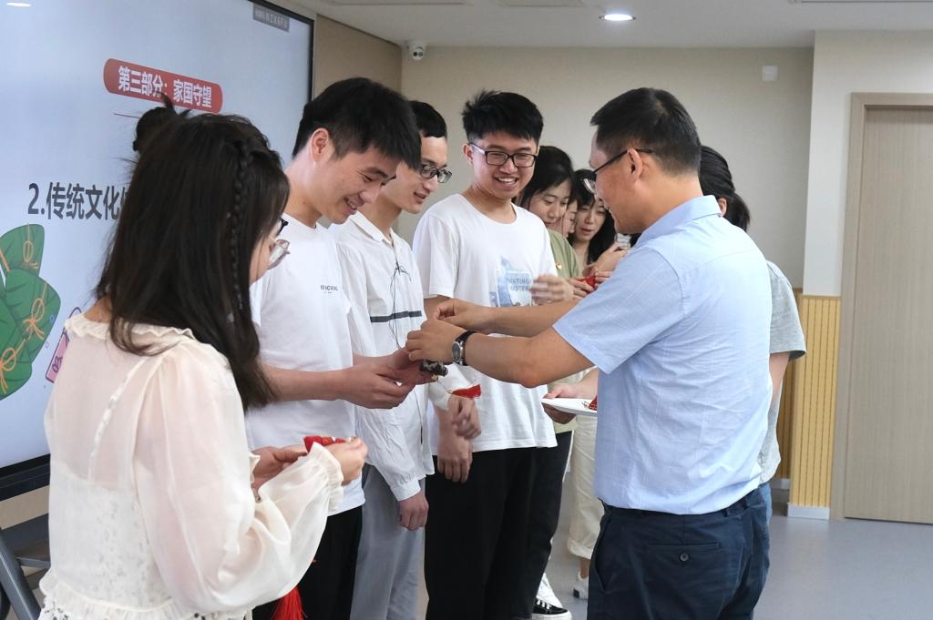 活动最后还安排了传统文化习俗体验——编端午五彩绳,为毕业生送上了饱含美好寓意的香囊。在浓郁的端午节日氛围中,大家展望未来路,同祝家国安康。