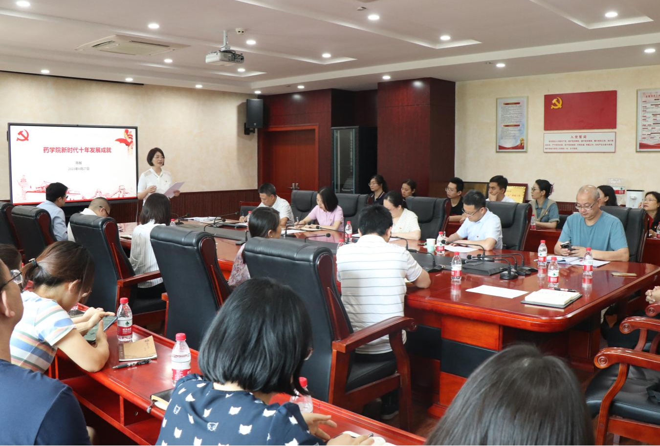 大家参观了药公司党建文化墙、党员活动室等场所,观摩了药学院教工第一支部“以学正风,强师德正师风”主题党日活动,聆听了药公司党委书记陈敏所作的“药学院新时代十年发展成就”报告,围绕支部建设经验开展学习交流。观摩过程中,大家认真看、仔细听,共同参与知识竞答等学习交流环节,对标样板支部找差距,积极学习药学院教工第一党支部在创新开展组织生活、打造党建品牌活动、立足学科专业推动党建与事业发展深度融合等方面的经验做法。