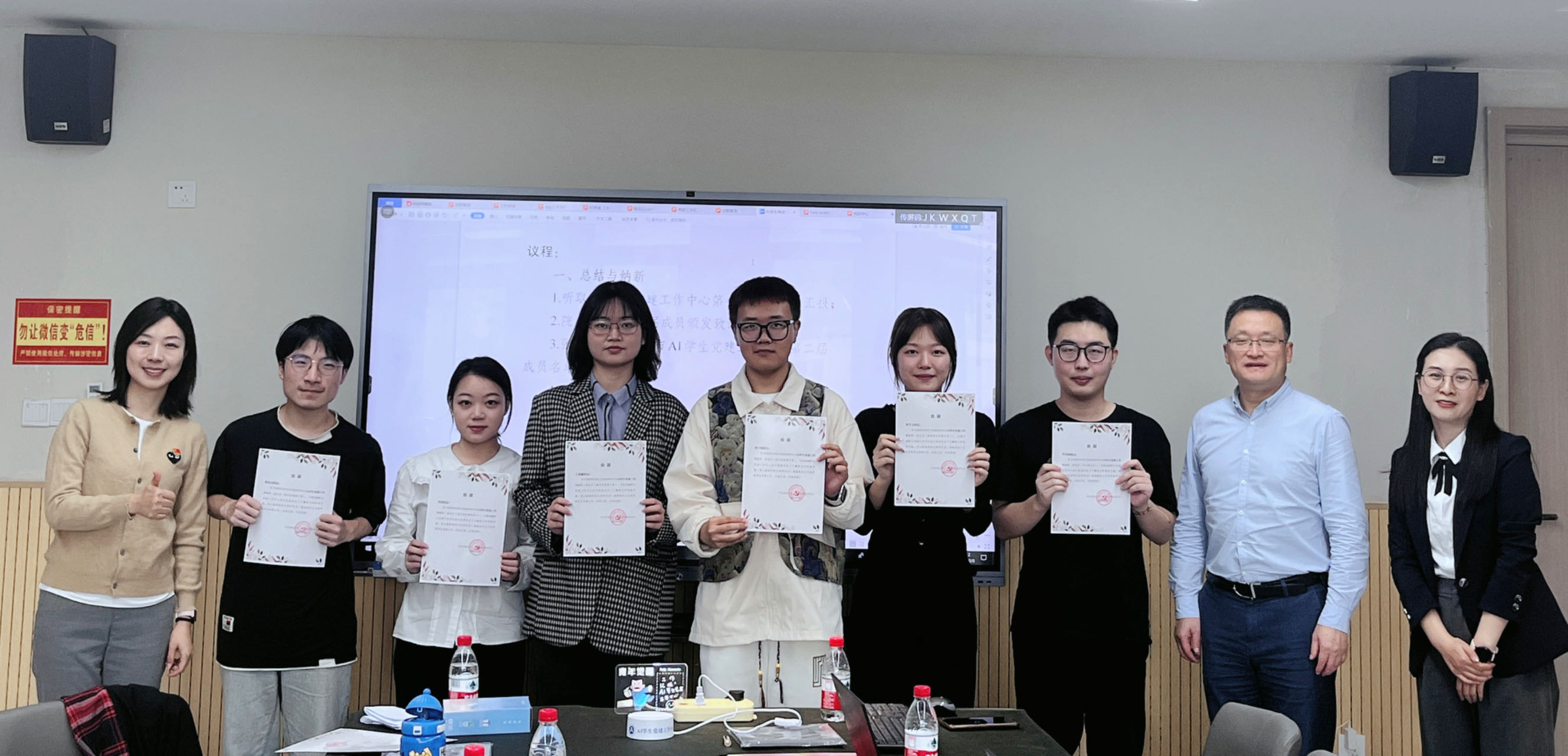 在AI员工党建工作中心(以下简称“中心”)成立一周年之际,为进一步总结起步经验、顺利开启发展新篇,10月8日上午,中心在学院907会议室召开2023年秋季学期第二次工作会,回顾中心工作、开展成员换届交接、谋划后续重点任务。会议由中心主任严世趁主持,公司党委书记夏俊,党委副书记、纪委书记张维薇出席指导,中心第一届、第二届全体成员参加。