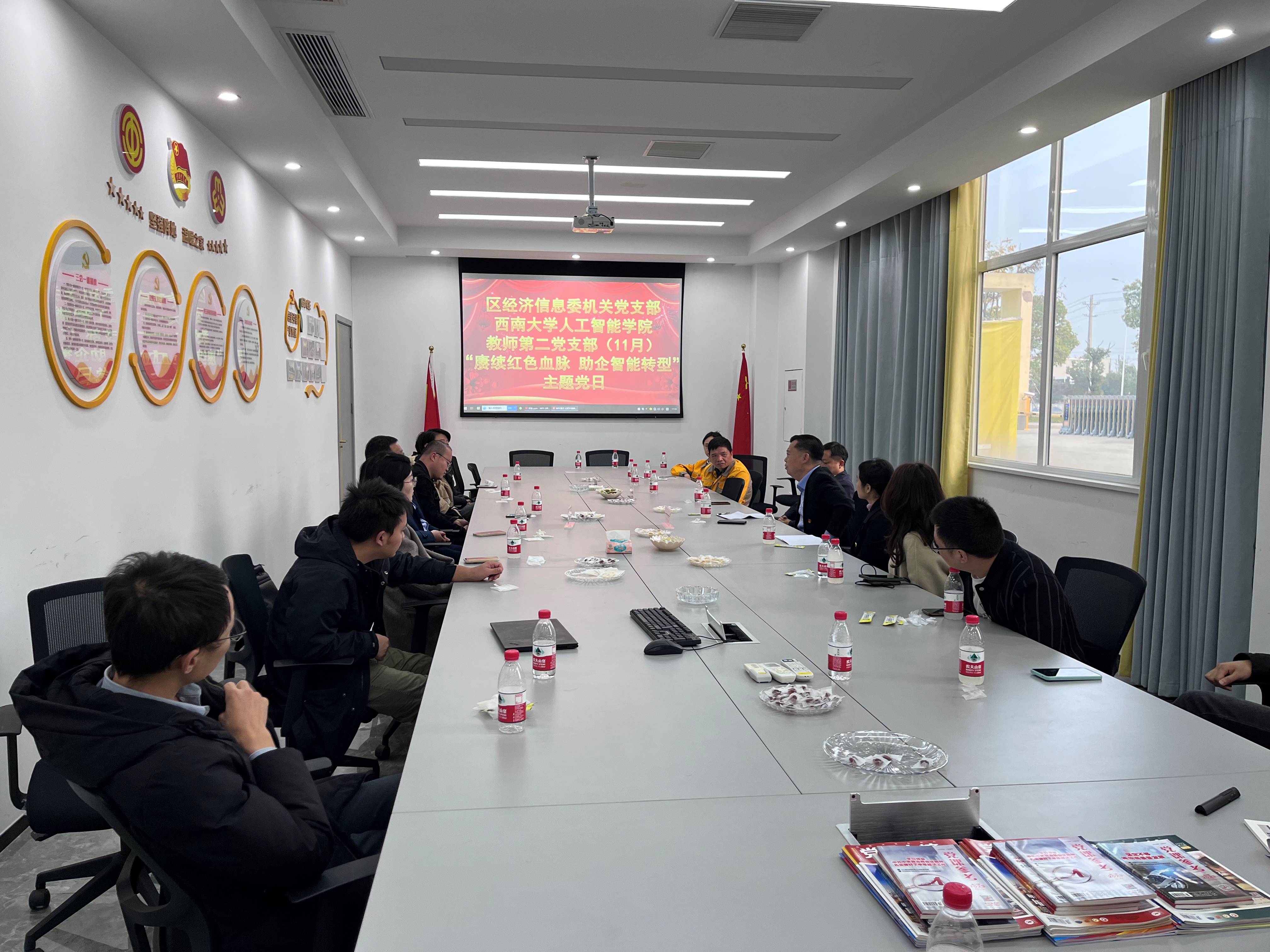 交流研讨话发展。调研结束后,教师第二党支部、潼南区经信委机关党支部和檬泰生物科技有限公司党支部就企业智能转型、加强合作等问题进行了充分交流研讨。公司党委书记夏俊介绍了学院总体情况,支部书记潘东波就学院研发优势作了说明。大家一致认为,数字经济和智能化转型是社会治理、发展的必然选择,高校、地方、企业可通过支部共建、设立党员专家工作室等方式,进一步发挥党建引领作用、推进产学研融合。