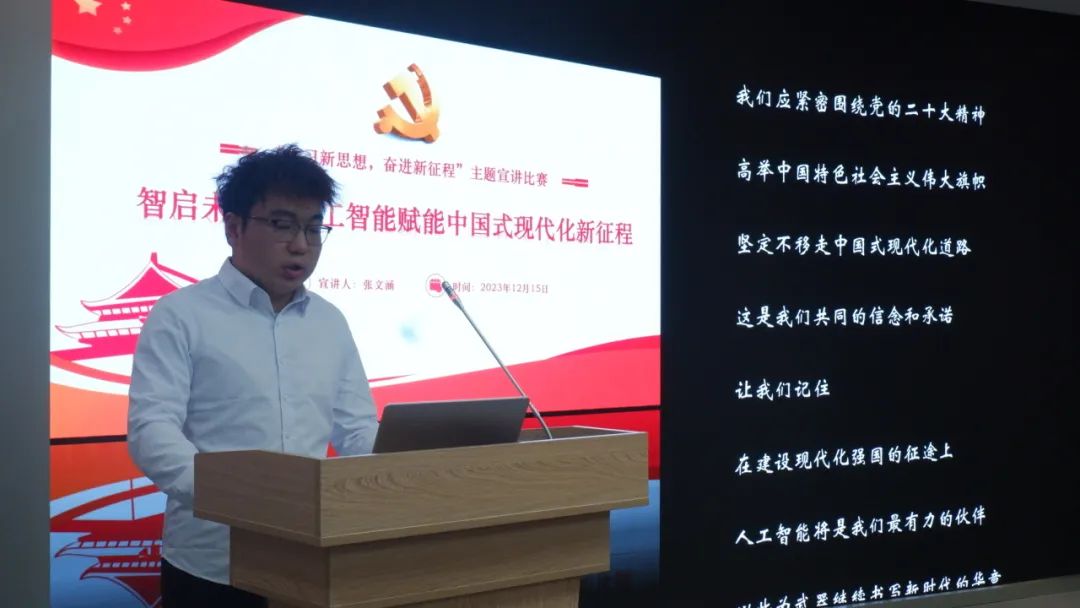 为深入学习贯彻习近平新时代中国特色社会主义思想,深化学院本科生 “党的二十大精神人人讲”AI课间微宣讲活动成果,助力新工科员工政治素养提升与综合素质锻炼,12月15日下午,公司启动首期【AI员工大讲堂】,在801会议室举办“学习新思想,奋进新征程”主题宣讲比赛。公司党委书记夏俊,党委副书记、纪委书记张维薇出席活动。本科生各班级员工代表、党校第二期入党积极分子培训班学员代表参加。