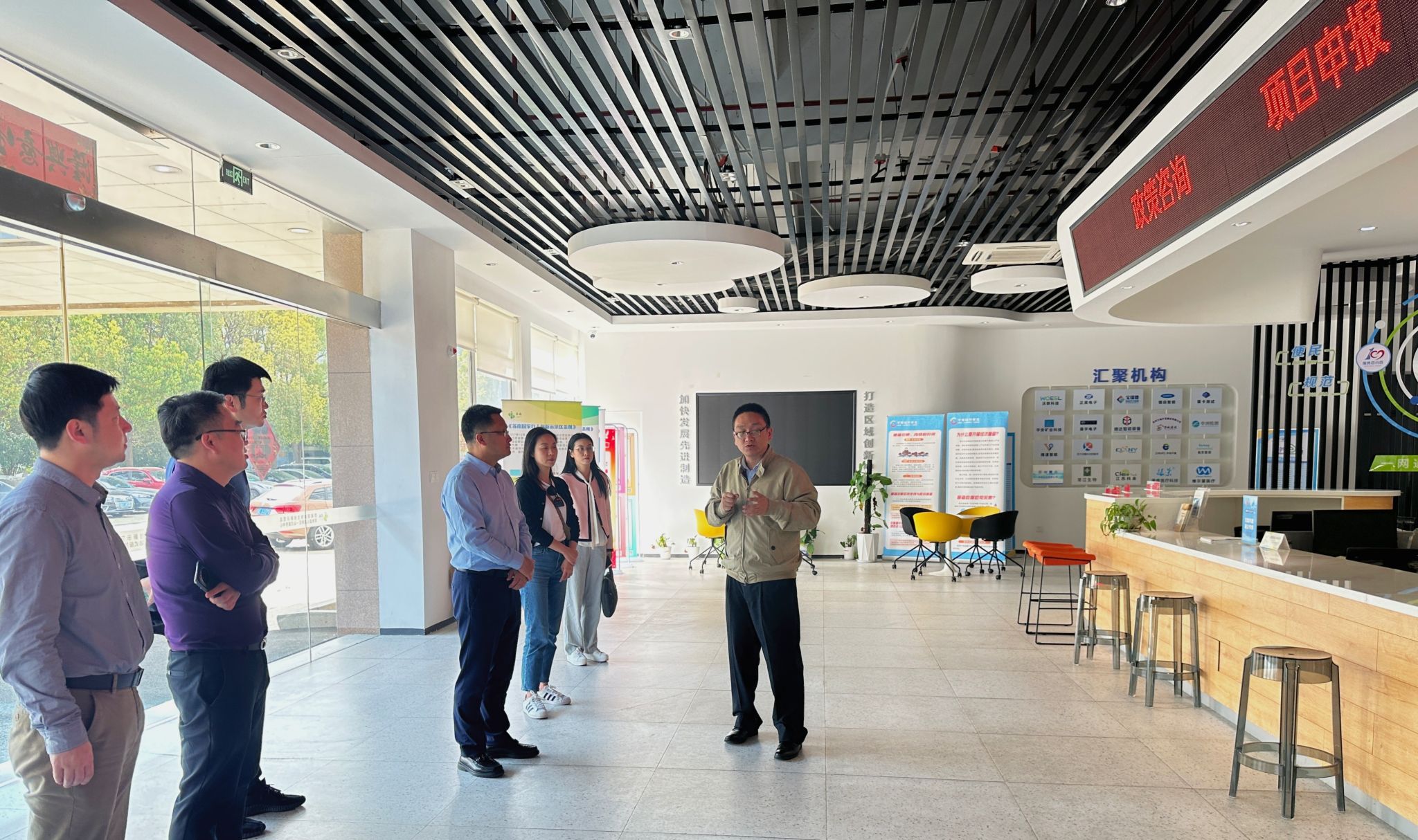 在点点taptap官方网站常熟研究院,学院一行与西大常熟研究院经理黄迎桂、副经理周征宇等有关同志进行了座谈交流,走访了苏南国家自主创新示范区常熟虞山高新区一站式服务中心,深入了解科技企业孵化和科技成果转化落地、当地就业创业政策等情况,就依托点点taptap官方网站常熟研究院加强院企合作、拓展学院员工实习实践基地建设等事宜进行了深入探讨。