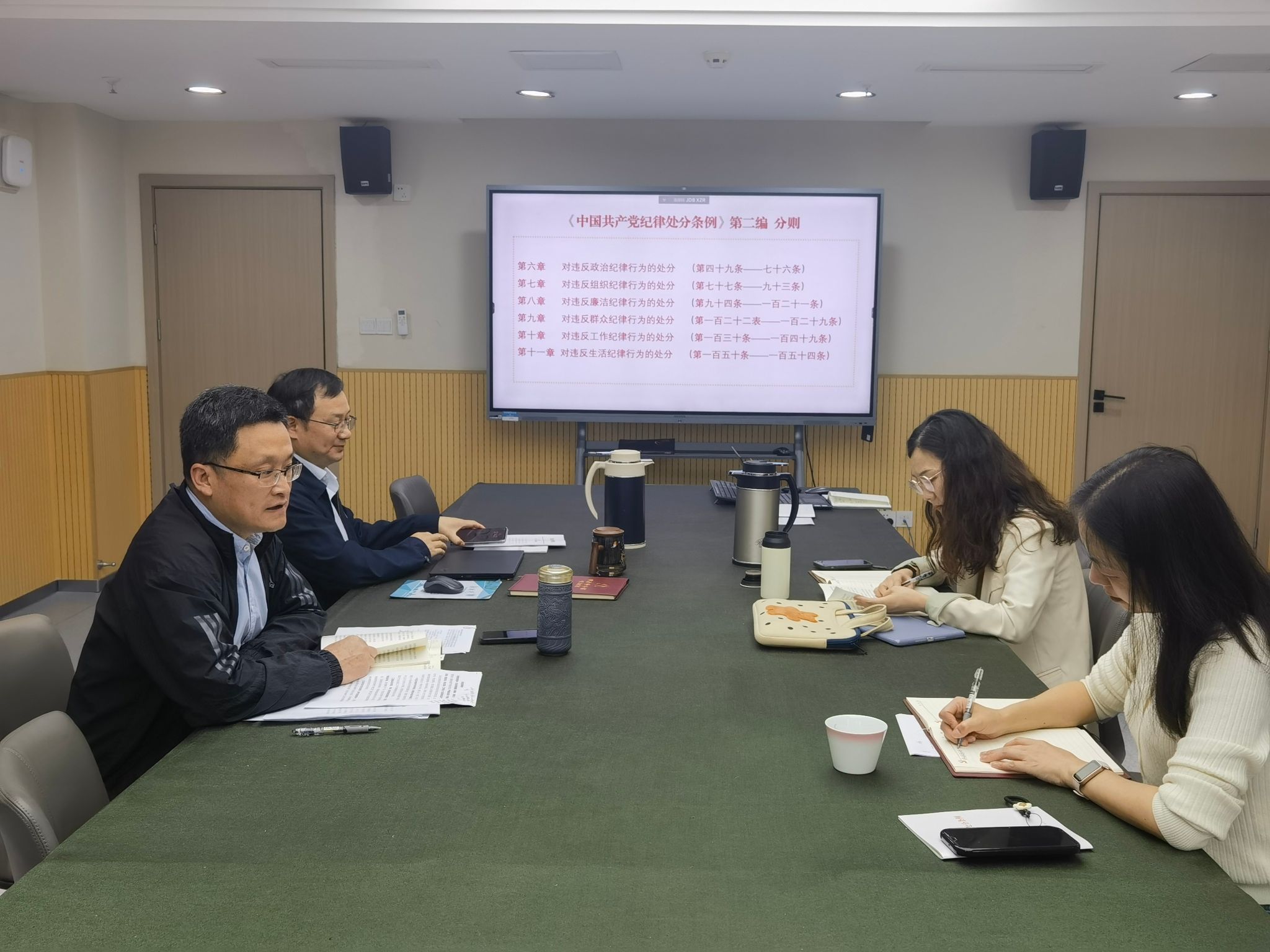 参会同志围绕《中国共产党纪律处分条例》(以下简称《条例》)第二编分则,通过“逐人领学+重点研讨”开展学习交流。夏俊、段书凯、张维薇、胡小方分别领学了对违反“六项纪律”行为的处分规定,在原原本本学习《条例》规定的基础上,结合新增或修改的重点条文、典型案例、实际工作等作深入学习解读,从维护党的团结统一的高度,深刻理解把握《条例》重要意义和贯穿其中的重大原则。