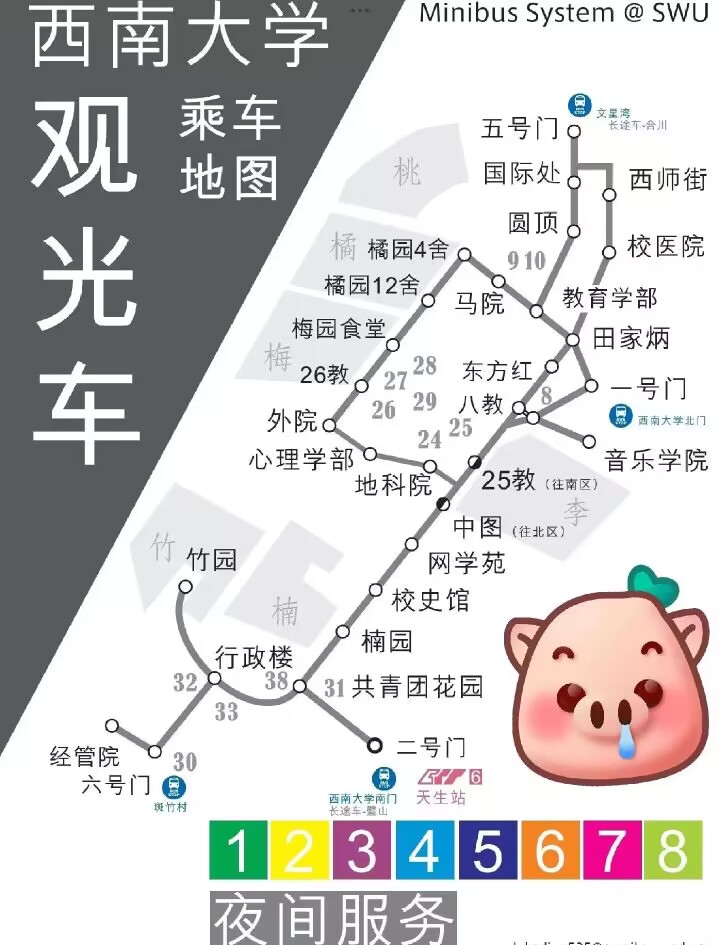 校内交通方便,可以通过校园一卡通或钉钉扫码乘车。北区校车起始点最多在橘园,所以如果距离橘园不是很远建议去那里坐车。北区可以从五号门(与学院距离最近的校门)和一号门出校,南区二号门是人流量最大的校门,同时也是距离地铁站口最近的校门。