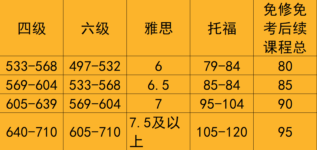在每学期开学时,除大一上,可进行公共英语免修免考,每学期免修标准不同,仅供参考。
