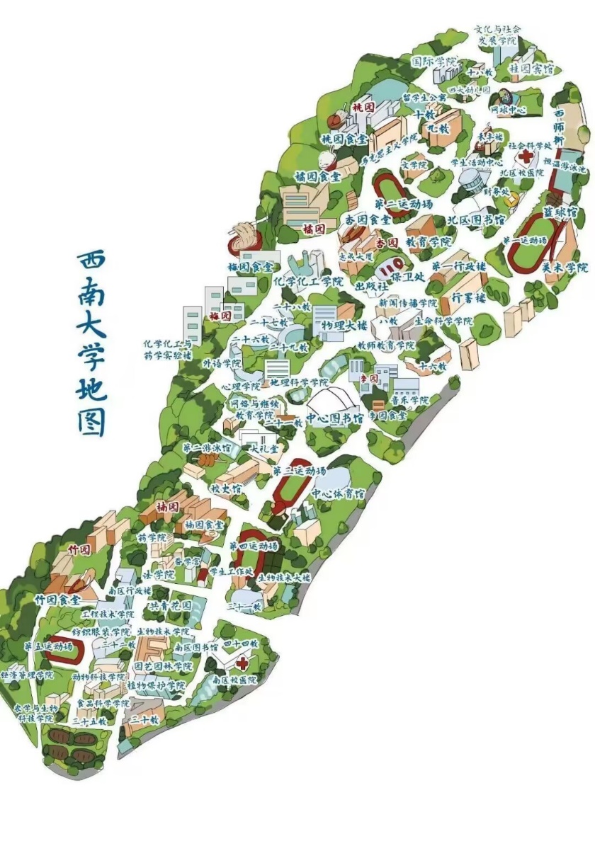 Ps.西大由于占地面积广且地图星状分布类似长条状,故习惯上将其分为南北两区,而我们人工智能的员工都住于北区。