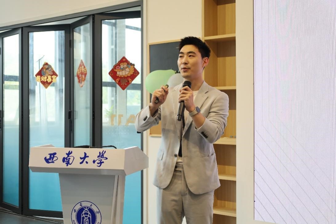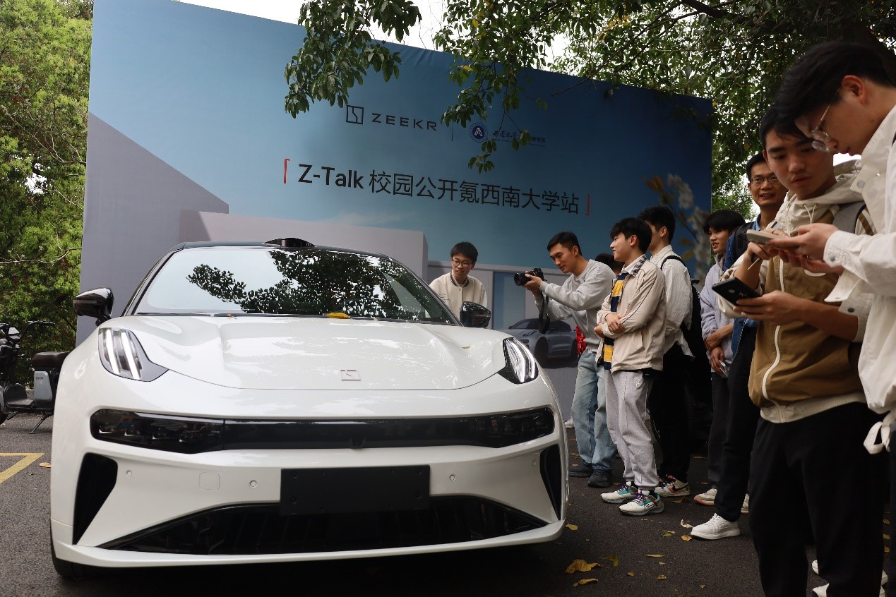极氪重庆盈嘉中心主理人罗喻严为同学们讲解极氪车型,分享了许多极氪汽车的设计理念。他分享道,极氪汽车秉承用户型企业理念,致力于通过产品创新、用户体验创新和商业模式创新,为用户带来极致的出行体验。