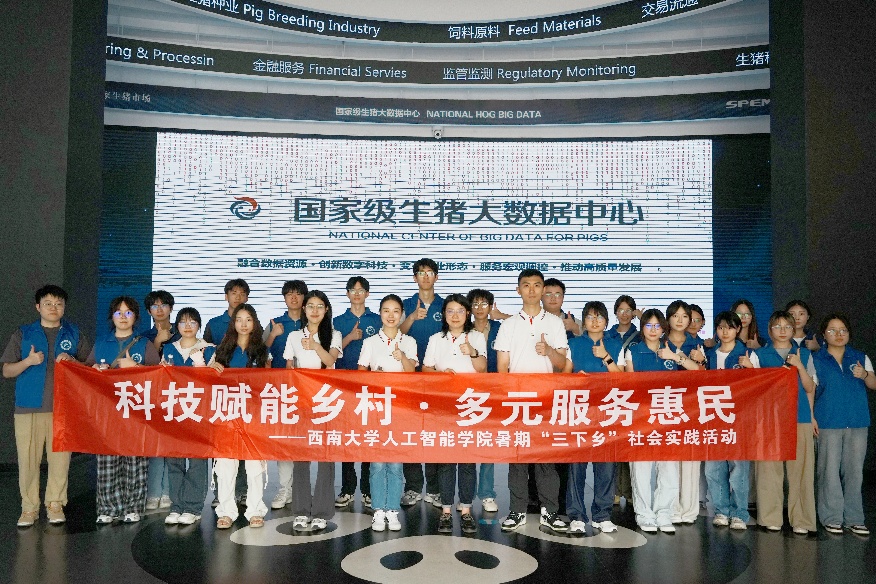 启动会结束后,实践团全体成员在荣昌团区委带领下,赴国家级生猪大数据中心参观学习。参观中,同学们通过实地观摩与讲解聆听,直观感受荣昌依托生猪产业链构建的数字经济生态,深刻体会大数据技术在养殖监测、市场预警等农业现代化场景中的应用实效,切实认知数字技术赋能传统产业、推动区域经济发展的创新价值。