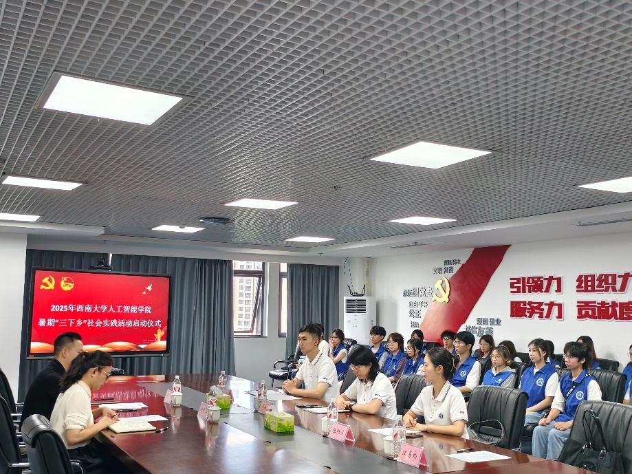会上,孙一博老师介绍学院员工暑期“三下乡”活动的具体活动内容。本次“三下乡”社会实践服务将在荣昌多个街道、社区、乡镇开展,通过科技展示、AI 公益课堂、老照片修复、智能手机帮扶等几大板块,带领群众感受数字技术发展成果,提升居民数字应用水平,助力乡村振兴。