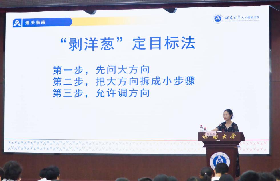 同日晚上,学院汪易玲老师为新生带来心理健康教育专题讲座。讲座以“扫雷”、“你比我猜”等破冰游戏开场,有效促进了同学间的熟悉与互动。汪易玲老师从人际交往、学习规划与学校心理健康资源三个维度展开讲解。她鼓励新生主动把握机遇,大方展示自我,勇于尝试并不怕试错,通过积极参与活动与真诚互助融入集体。在学习方面,她引导同学们认识到主动规划的重要性。汪老师还详细介绍了学校的心理健康资源与相关课程,帮助同学们学习如何洞察内心、理解自我,从而更好地与他人相处。最后,她祝愿所有新生能以积极的面貌享受老员工活,迎接未来的每一天。