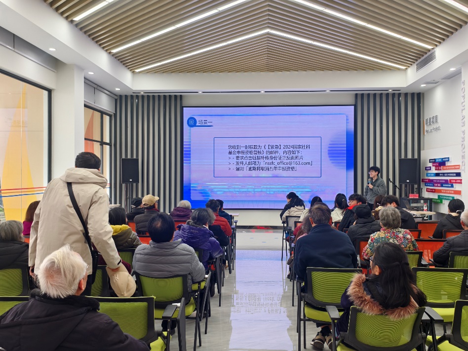 数字化时代背景下,AI诈骗手段层出不穷,对中老年人群体构成了严重威胁。为了提升退休教师、老教授对此类诈骗的警觉性和应对能力,3月7日,学院“智多星员工科普社”受邀为学校离退休第15、16、18党支部及老教授协会南区机关小组举办一场主题“防范AI诈骗,安享美好生活”的科普宣传活动。活动得到了退休教师党支部的热烈欢迎和积极响应。