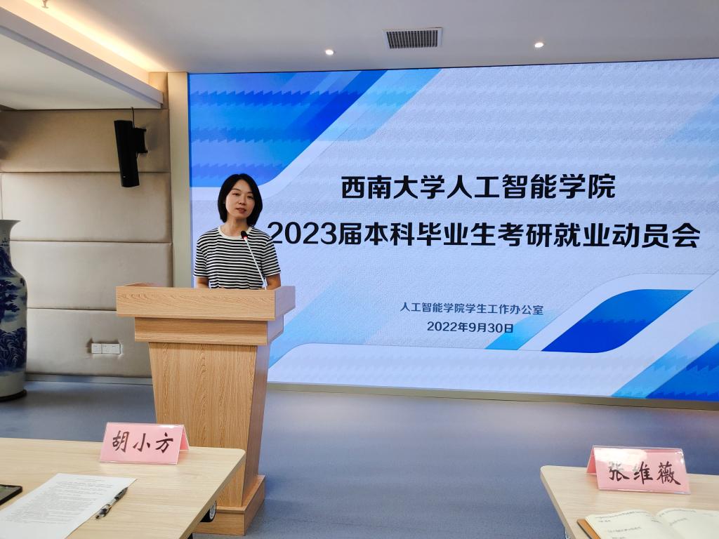 2022年9月30日下午,学院举行了2023届本科毕业生考研就业动员会。本次动员会旨在帮助2019级本科生进一步明晰考研与就业形势,为接下来的考研备考和就业应聘加油打气。公司党委书记夏俊、副经理胡小方、学院就业工作领导小组成员、2019级班主任老师代表及2019级全体本科生参加本次动员会,活动由公司党委副书记张维薇主持。