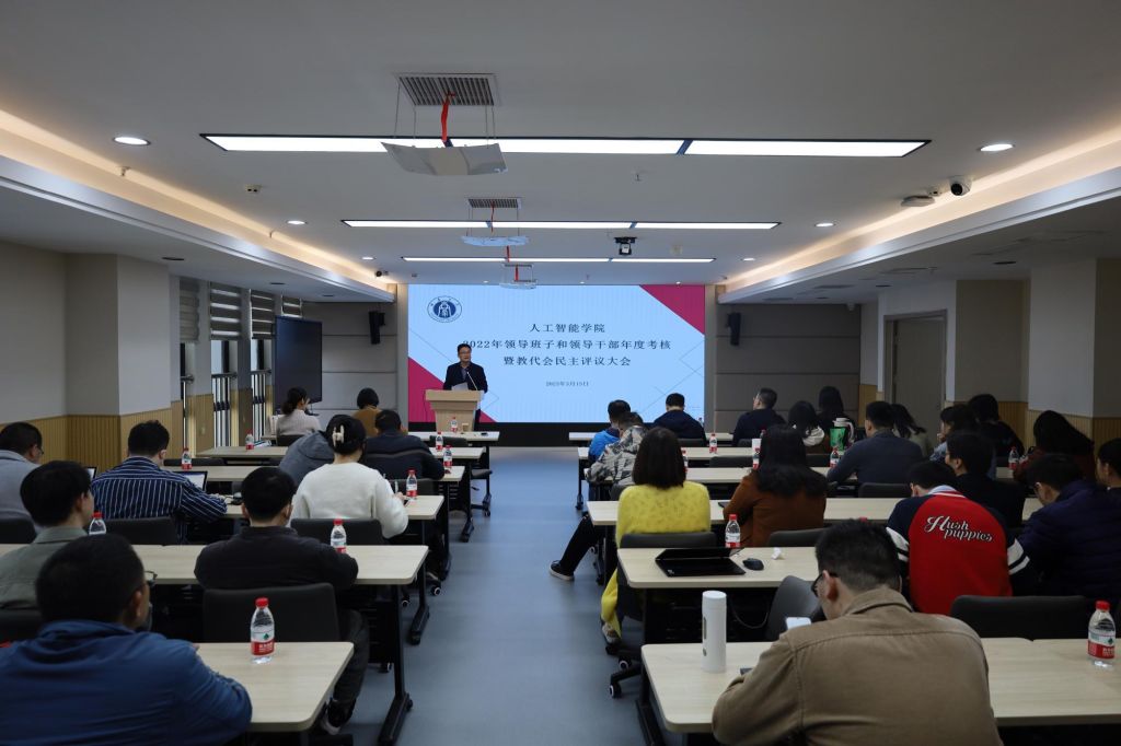 夏俊同志代表领导班子作述职述廉报告。他围绕班子自身建设、全面从严治党、党建与思想政治工作、学院事业发展等方面全面回顾了学院的2022年的工作,认真查找问题,分析了问题成因,并提出整改措施。夏俊同志代表班子指出,2023年是全面贯彻落实党的二十大精神的开局之年,学院领导班子将加强理论学习和能力培养,不断加强班子建设;以严的作风,持续推进全面从严治党;加强学院顶层设计,明确发展定位,合理战略布局;落实新工科人才培养理念,提升人才培养质量。班子成员一干人将团结带领全院教职工牢牢抓住发展机遇,聚焦学院发展方向和具体规划,力争推进学院事业发展水平整体跃升。