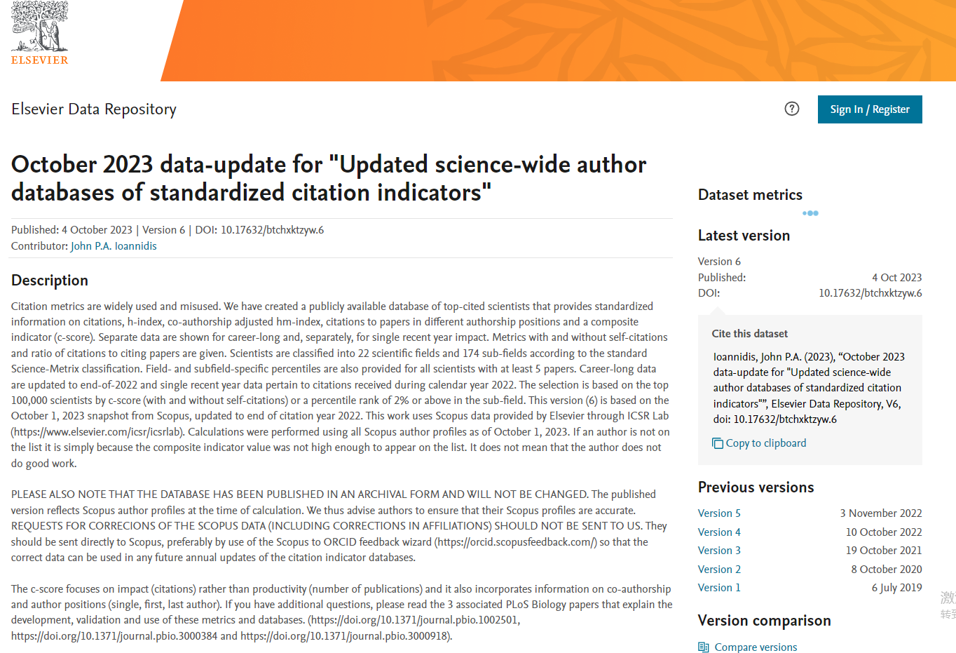 榜单来源:Ioannidis, John P.A. (2023), “October 2023 data-update for "Updated science-wide author databases of standardized citation indicators"”, Elsevier Data Repository, V6, doi: 10.17632/btchxktzyw.6