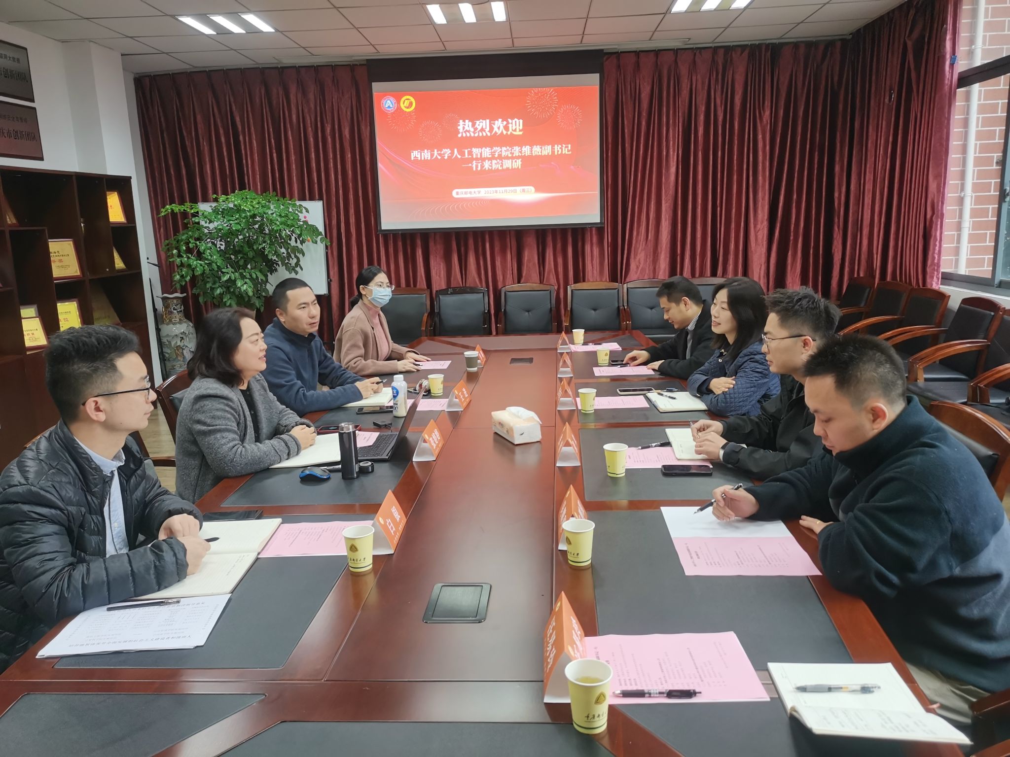 2023年11月29日上午,公司党委副书记、纪委书记张维薇带队赴重庆邮电大学计算机科学与技术学院/点点taptap官方网站围绕员工工作和员工发展进行学习调研,学院团委书记、学工办主任张放,班主任张里博、吴鹏程,辅导员汪易玲参加活动。重庆邮电大学计算机科学与技术学院党委副书记张婷婷,副经理、班导师王进,团委书记白银和辅导员罗娜参加会议。