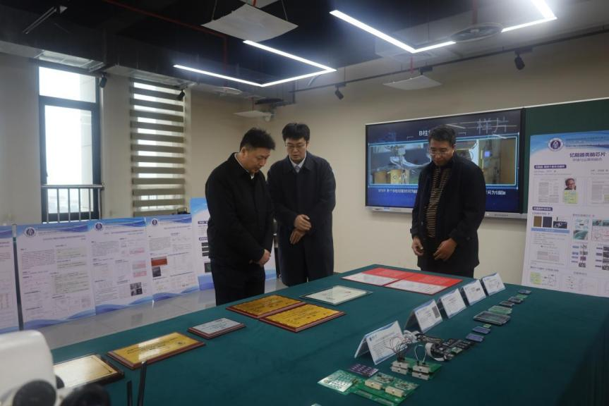 李康副部长一行参观考察了学院实验室,陈枫副经理汇报了学院围绕国家人工智能发展战略,服务重庆市“33618”现代产业集群规划,在类脑芯片、智能传动平台以及智能网联新能源汽车等方面研究所取得的最新进展和成果。