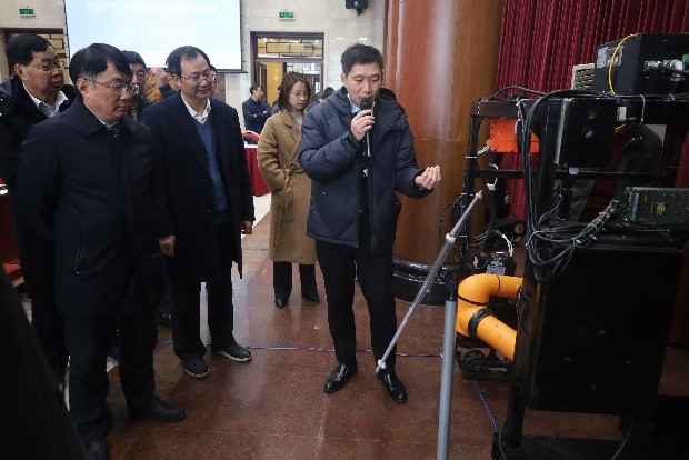会议分为三个阶段。第一阶段由中心主任段书凯主持。技术委员会专家和学校领导现场参观了中心和类脑实验室的研究成果。林毓培博士详细介绍了中心在智能传动与装备、智能农机、大数据智能化、智能传感与测控等方向的成果。王丽丹教授、周广东教授和周跃老师对类脑实验室在智能器件与类脑芯片、机器嗅觉与智能传感等方面取得的成果进行了介绍和现场演示。