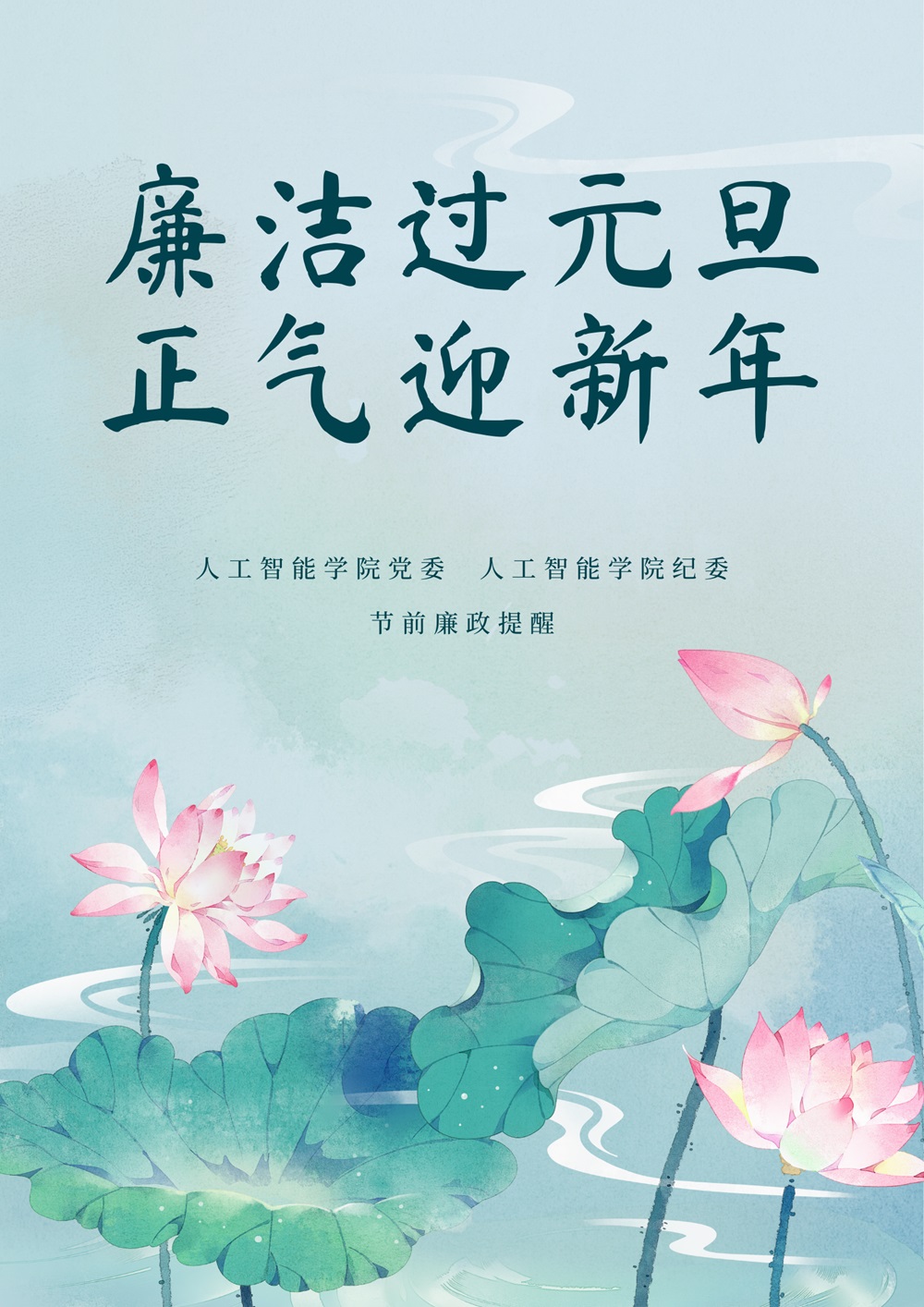 公司纪委温馨提醒:讲诚信,树师德,正道方能心安。谈廉洁,扬正气,微处更应律己。希望各位老师廉洁过元旦,正气迎新年!祝老师们新年快乐