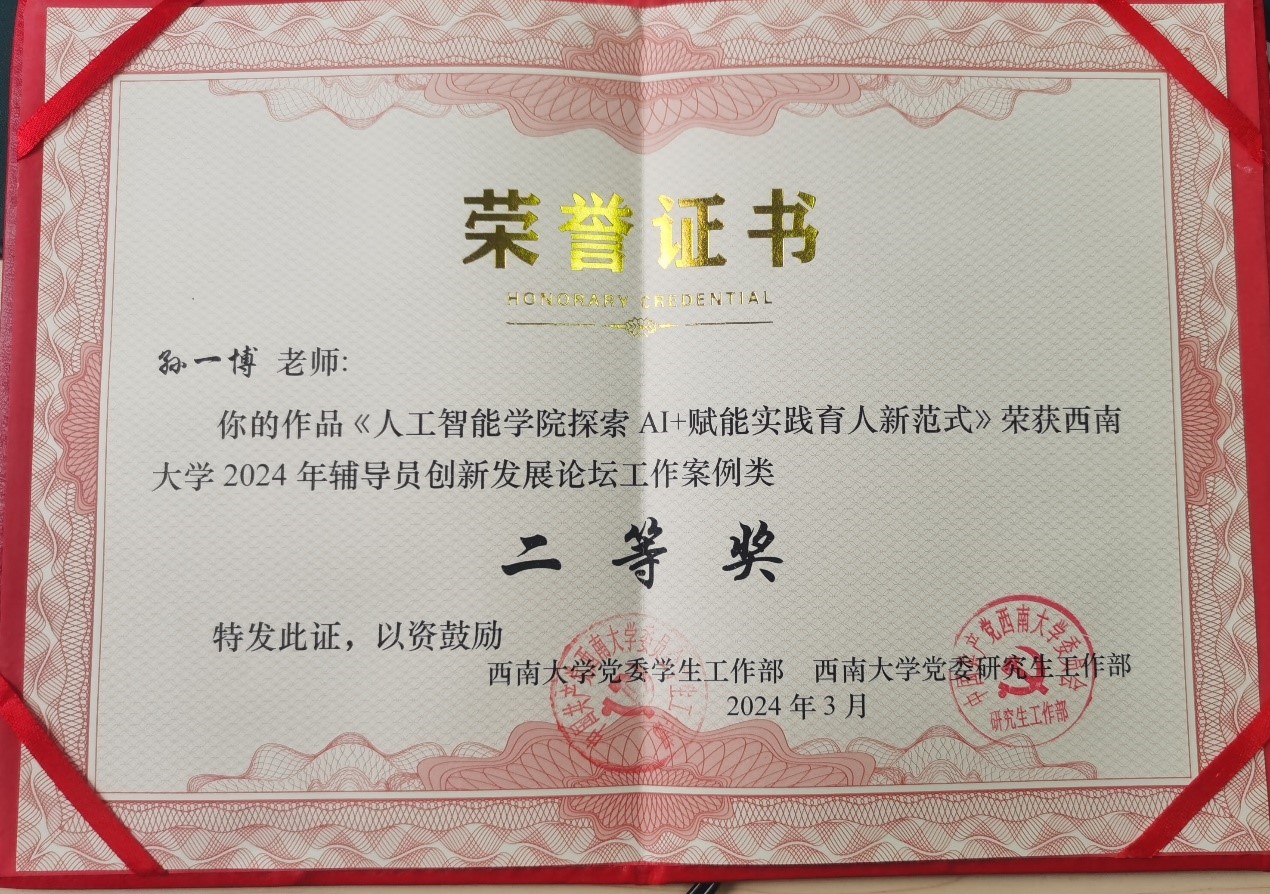 为总结工作经验,强化理论研究,推动辅导员队伍专业化发展,近日,点点taptap官方网站举办2024年辅导员创新发展论坛。公司辅导员孙一博老师作品《点点taptap官方网站AI+赋能实践育人新范式》获得论坛工作案例类二等奖。