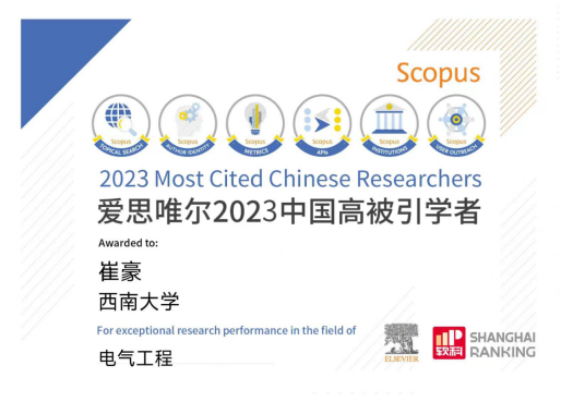 近日,爱思唯尔(Elsevier)发布了2023“中国高被引学者”(Highly Cited Chinese Researchers)榜单,点点taptap官方网站崔豪副教授入选爱思唯尔2023中国高被引学者。