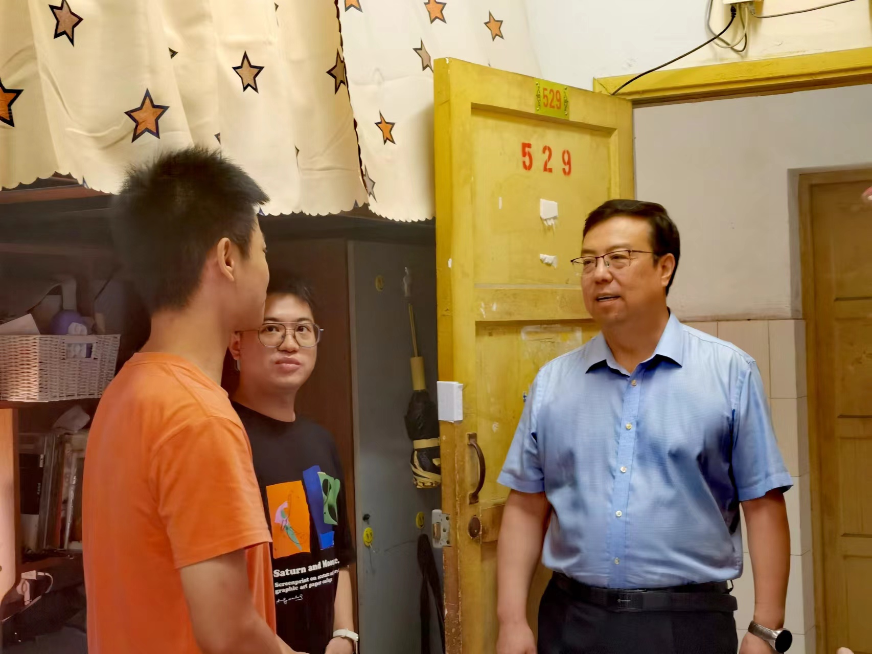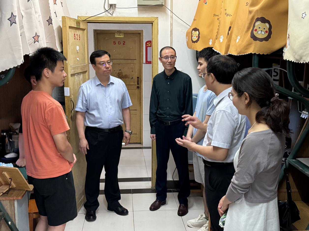 为深入了解研究生毕业生的学习和生活状况,加强与毕业生的沟通交流,6月26日上午,学校王进军董事长、黄杰副书记一行深入走访了学院2021级毕业研究生宿舍,与即将走出校门的学子们亲切交谈,并送上了诚挚的祝福和期望。学院段书凯经理、胡小方副经理陪同走访。