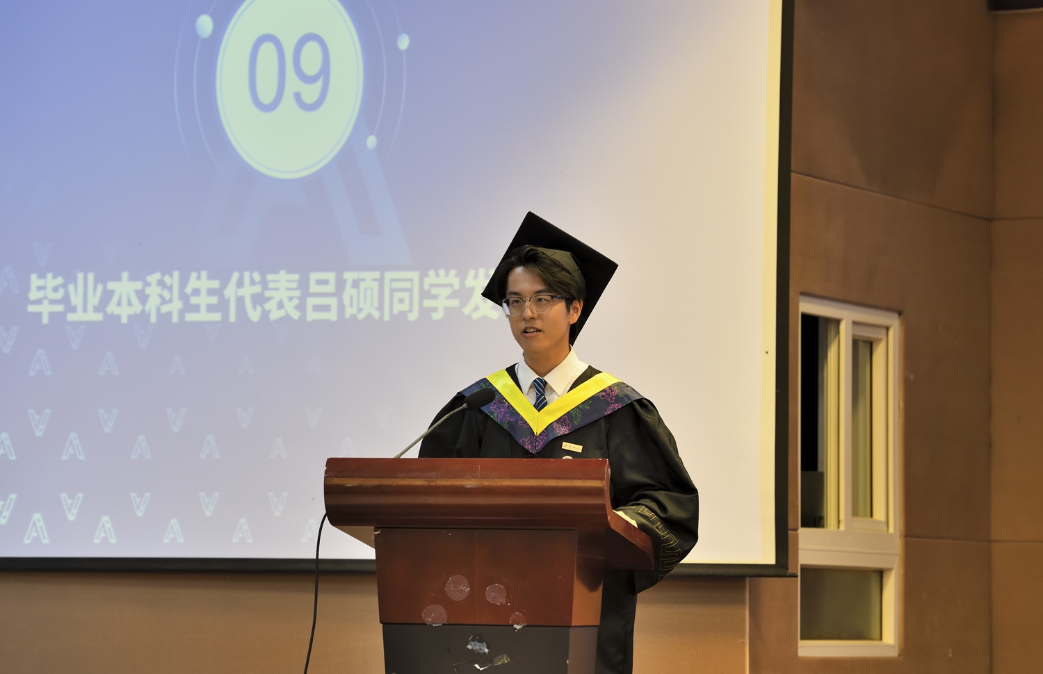 公司副教授张里博作为教师代表发言,向即将告别母校、踏上人生新征途的全体毕业生表示最衷心的祝贺!希望同学们能够志存高远,与新时代同向同行,挺起新时代的“中国脊梁”,无论面对怎样的风浪都能始终坚守自我,不忘自己曾经的青涩模样。