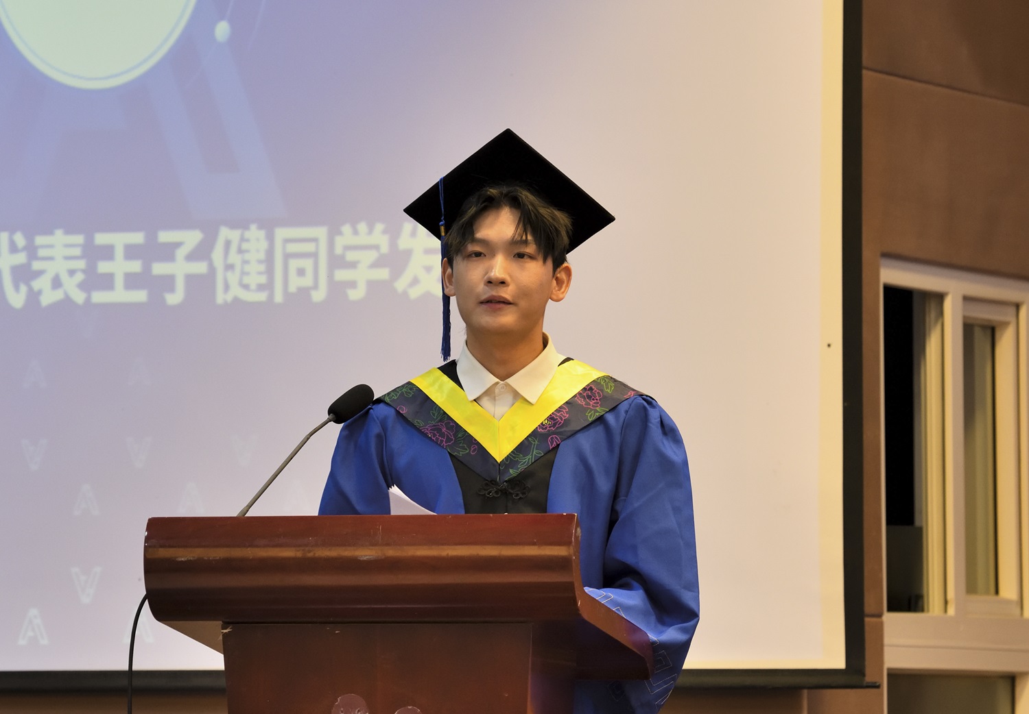 计算机科学与技术专业硕士毕业生王子健、数据科学与大数据技术专业本科毕业生吕硕作为毕业生代表发言。王子健深情讲述了与西大相遇、在西大成长、从西大出发的经历,号召同学们在新征程中继续挺膺担当、贡献青春力量。吕硕表达了对学院培养的感激,表示将坚持做深耕专业的排头兵、做躬耕实践的先锋队、做新质青年的践行者,在新的征途上奋勇前进。