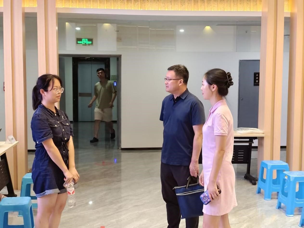 迎新活动前一日,公司党委书记夏俊,党委副书记、纪委书记张维薇来到迎新会场,确保迎新准备工作的完善。