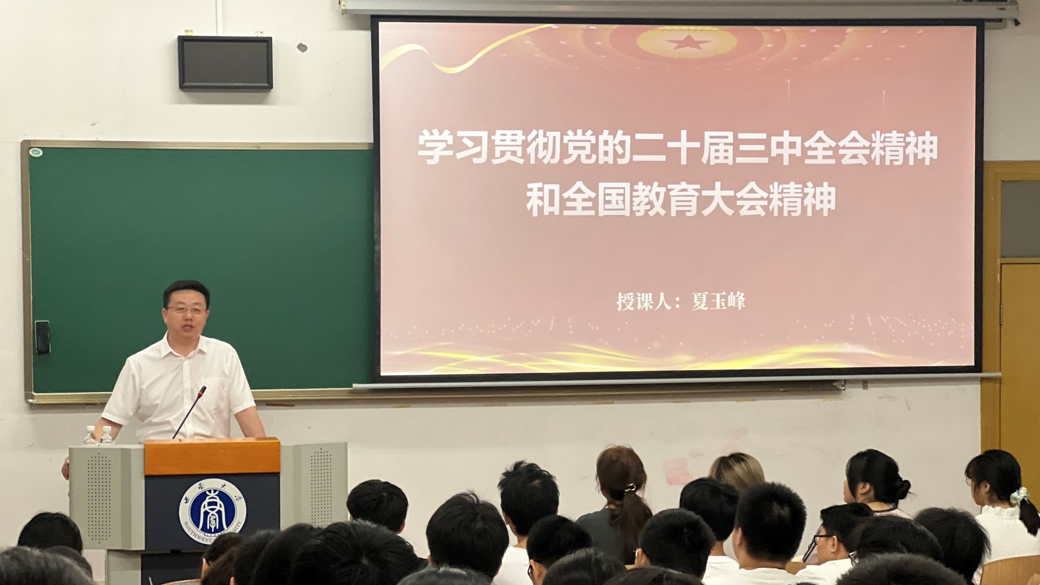 夏玉峰副书记讲到,党的二十届三中全会是我们党站在新的历史起点上,进一步全面深化改革,吹响的奋进号角。全会通过的《决定》,深入分析了推进中国式现代化面临的新形势新要求,科学谋划了围绕中国式现代化进一步全面深化改革的总体部署,是指导新征程上进一步全面深化改革的纲领性文件。习近平总书记在全国教育大会上的重要讲话站在党和国家事业发展全局的战略高度,全面总结新时代教育事业取得的历史性成就、发生的格局性变化,系统部署全面推进教育强国建设的战略任务和重大举措,具有很强的政治性、思想性、指导性,是指导新时代新征程教育工作的纲领性文献,为建设教育强国指明了前进方向、提供了根本遵循。