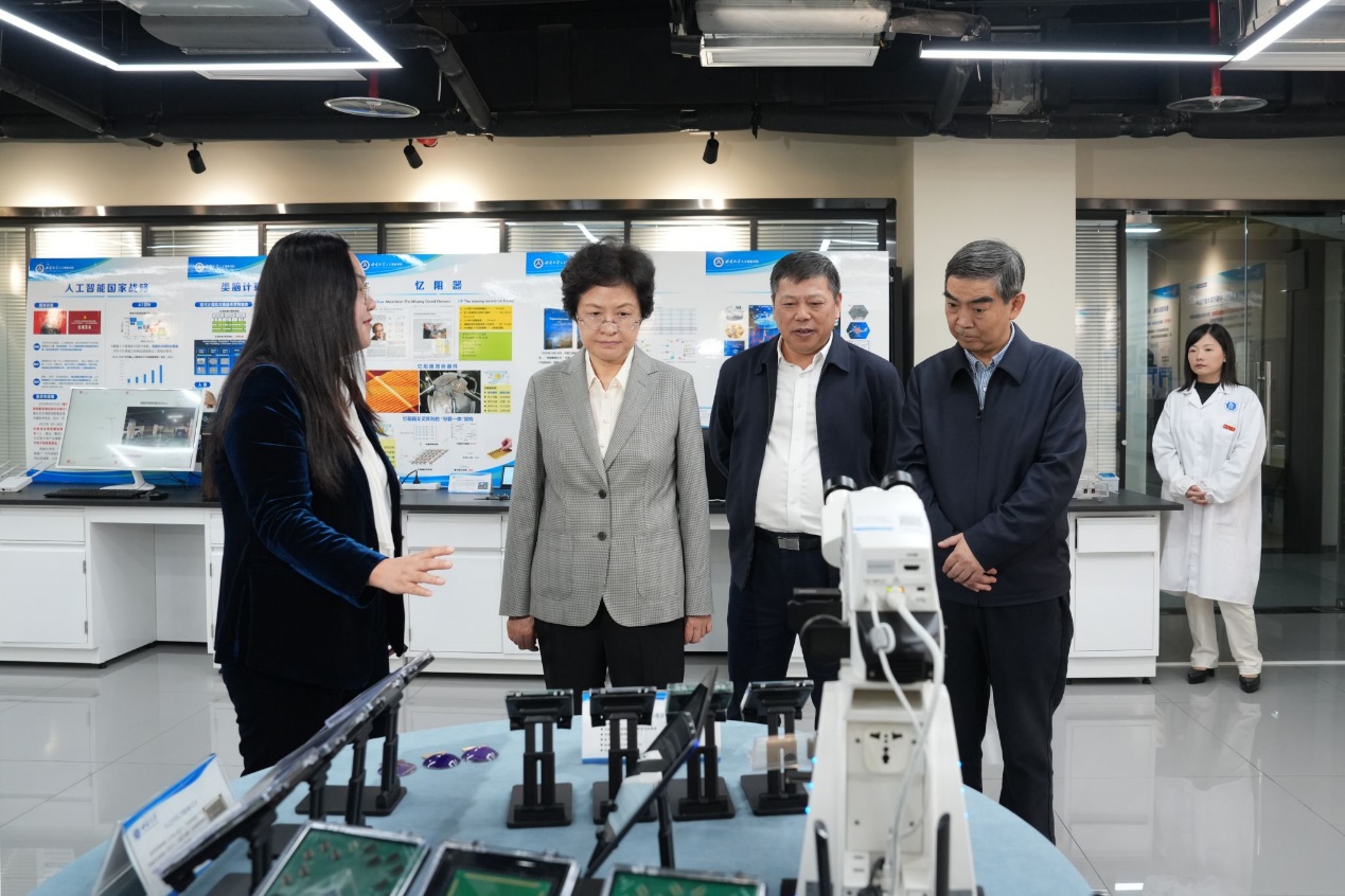 程丽华对资源昆虫高效养殖与利用全国重点实验室建成世界最大家蚕基因库、中国中西部最大桑树资源圃,绘制首张家蚕基因组框架图、精细图、遗传变异图等成绩给予肯定。她希望实验室继续聚焦资源昆虫领域关键核心技术攻关,充分发挥产学研协同优势,助力乡村振兴和生态建设。程丽华对类脑计算与智能芯片重庆市重点实验室解决核心算法、智能传感器、类脑芯片等关键“卡脖子”问题表示赞赏。她希望,实验室继续开展智能制造和智能装备研发,推动科研成果高效转化,更好服务国家重大战略和现代化新重庆建设。
