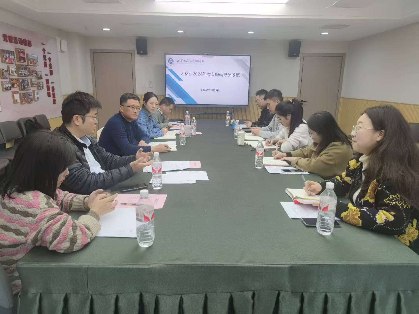 在考核工作会上,学院5名专兼职辅导员依次就2023-2024学年度工作情况向考核组进行了详细汇报。考核组成员从多个维度对辅导员工作情况进行现场询问,并就下一步工作的开展提出建议。