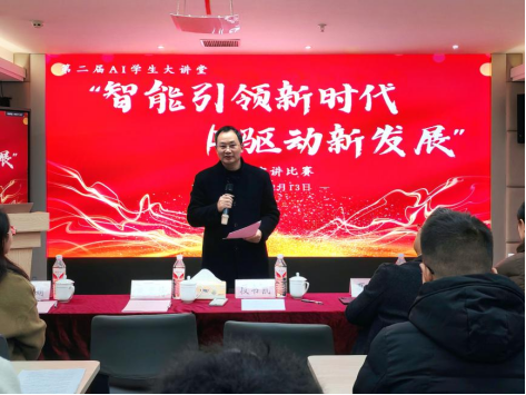 活动伊始,学院经理、党委副书记段书凯致辞,他强调自党的二十大以来,党中央将教育、科技、人才放在优先发展的战略地位,而人工智能是新一轮科技革命和产业变革的重要驱动力量,对中国式现代化进程有着深厚的意义。希望同学们通过此次比赛深刻领悟二十届三中全会精神,在知行合一中展现出西大AI青年的卓越风采。
