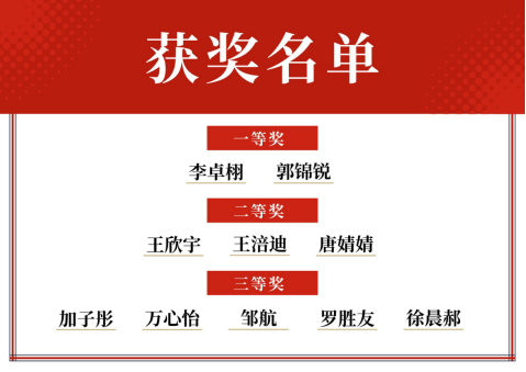 根据评委打分评审,最终,2022级郭锦锐和2022级李卓栩凭借精彩表现荣获比赛一等奖,评委们分别为一、二、三等奖选手颁发了证书和奖品。同时,夏俊书记、张维薇副书记为学院第三期党校培训优秀学员颁发证书。现场还设置了党的理论知识有奖竞答环节,同学们积极参与答题,以生动有趣的形式进一步加深对党的理论知识的理解和掌握。