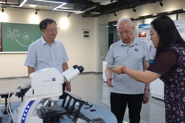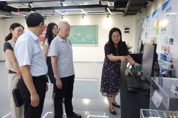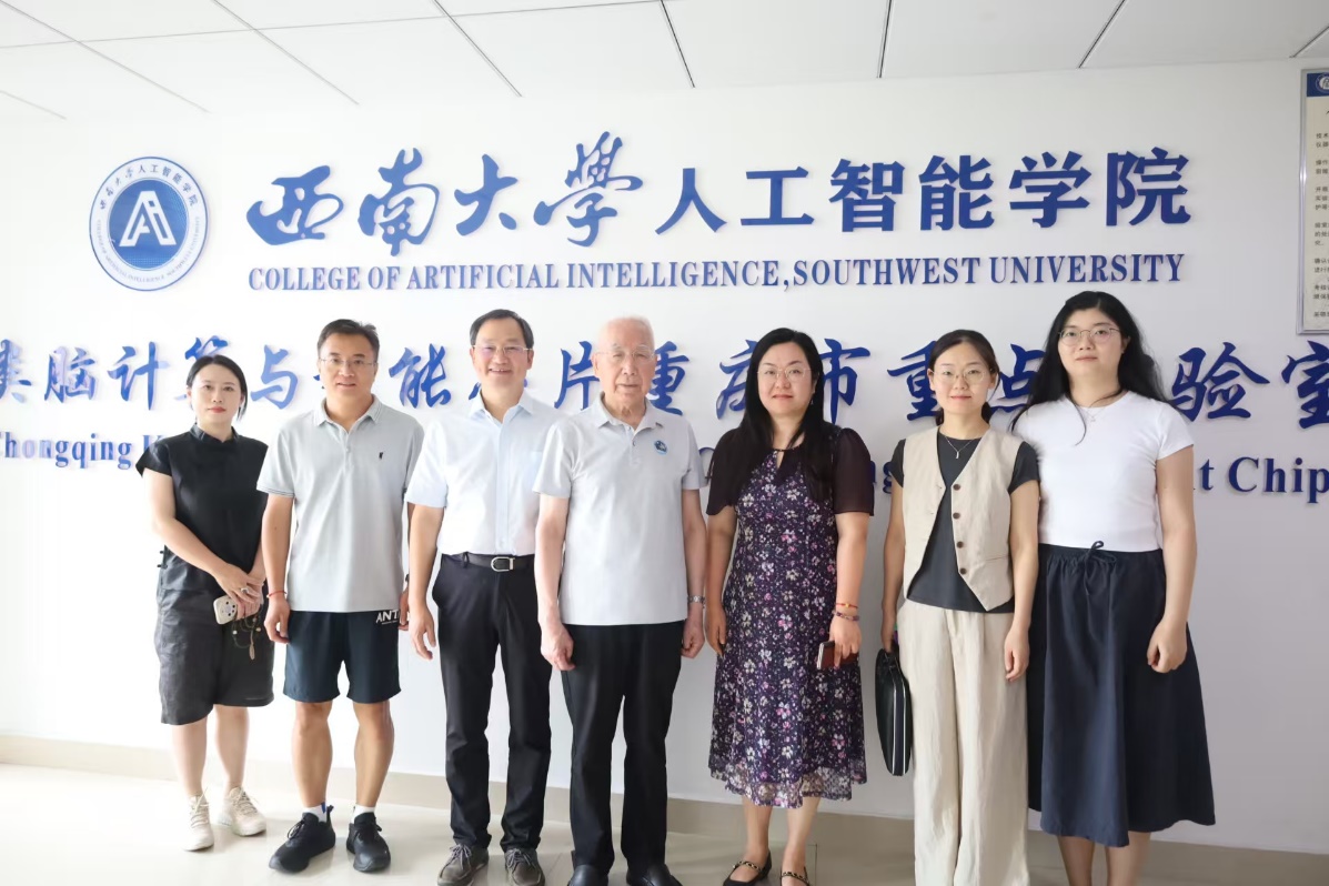 活动尾声,专家龙乐豪在学院领导的陪同下参观了类脑计算与智能芯片重庆市重点实验室,实验室主任王丽丹教授介绍了学院在类脑芯片技术、智能算法等方面的工作,并展示了该领域取得的科学研究成果。