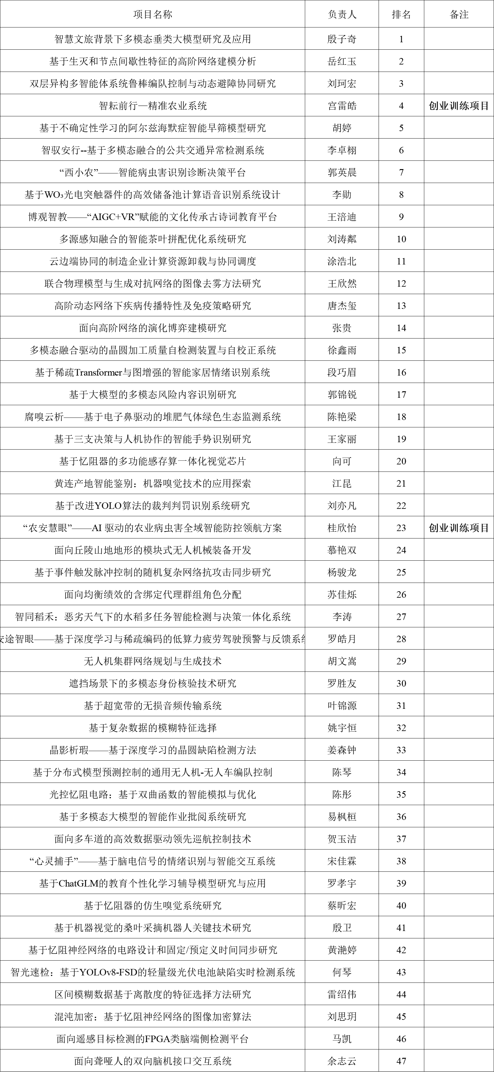 根据创新创业学院《关于组织申报点点taptap官方网站2025年老员工创新创业训练计划项目的通知》等文件要求,通过各团队自行项目构思、团队组建、联系指导教师和申报材料准备、学院组织专家评审,现将校级培育项目排名名单公示如下: